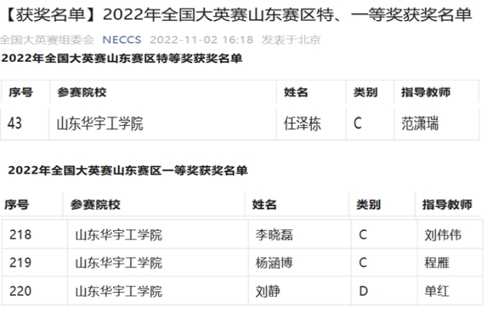 近日,全国老员工英语竞赛(山东赛区)决赛成绩公布,公司学子在本次比赛中再创佳绩,获国家级特等奖1项、一等奖3项。