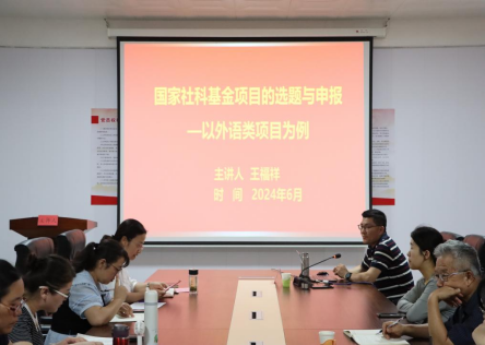为提升教师科研能力、社科基金项目申报质量。6月17日下午,太阳成集团tyc9728在10#二层党员活动室举办了“国家社科基金项目的选题与申报—以外语类项目为例”专题讲座,本次讲座邀请曲阜师范大学公共外语教学部主任王福祥教授主讲,太阳成集团tyc9728常务副经理李琦主持,副经理闫佩玉与太阳成集团tyc9728、设计与艺术公司、马克思主义公司部分教师参会。