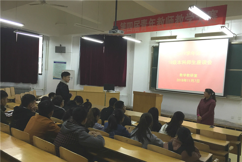 为进一步加强公司师生间的联系,促进师生关系和谐健康发展,提高数学教学水平,数学教研室于11月7日下午4时于6号楼101(16、17本科组)、104(18本科组)、201(五高组)、204(高职组)分别召开了四组期中师生交流座谈会。参加本次会议的有数学教师代表以及各专业员工代表。