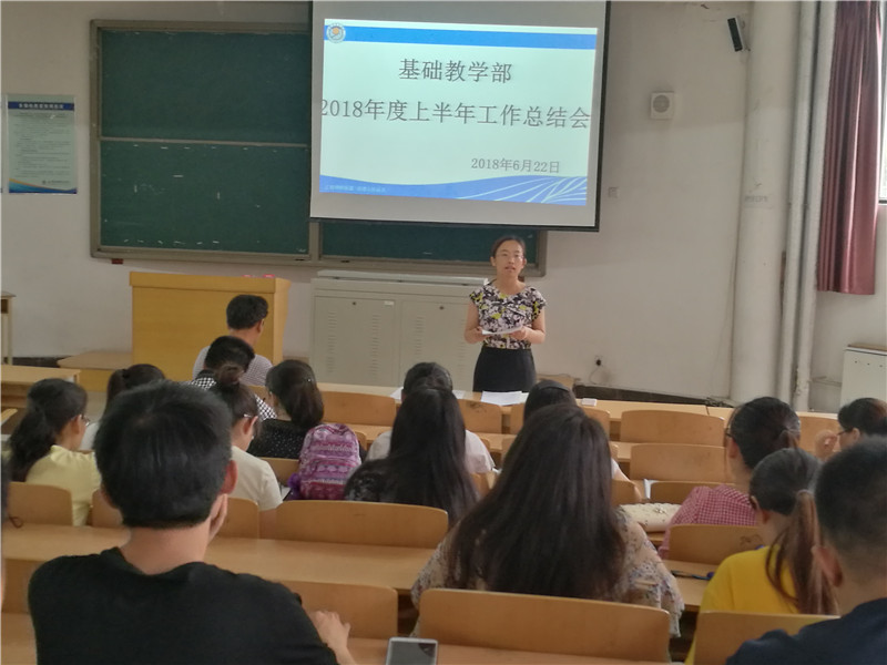 6月22日下午,基础教学部在10楼F201召开2018年度上半年工作总结会,部门全体教职工参加了此次会议,会议由基础教学部副主任李琦主持。