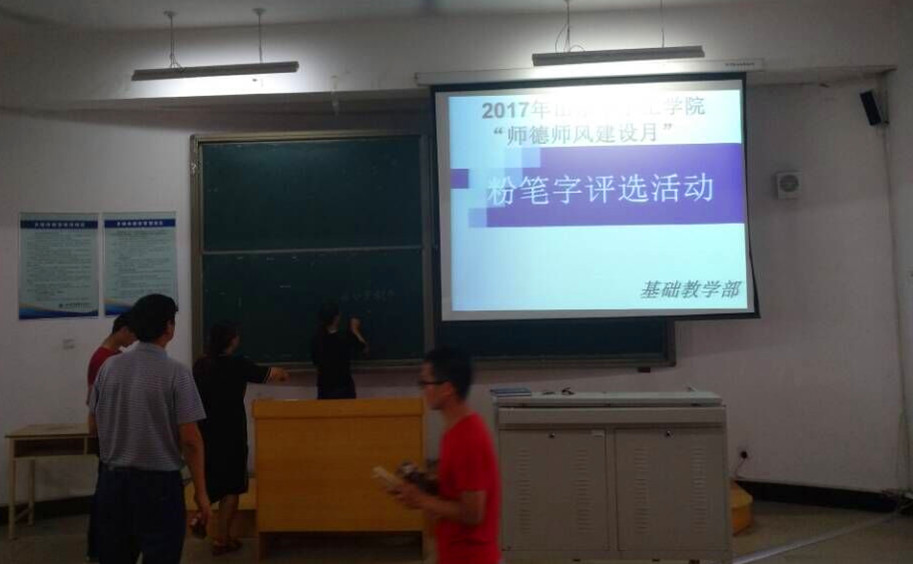 粉笔字是教师的基本功之一。教师粉笔字的书写水平不仅直接关乎教师的自身形象和课堂教学效果,而且对于员工练一手好字起到至关重要的示范引领作用。为了做好员工的榜样,培养员工优良的书写能力, 基础教学部于2017年9月21日下午四点在10号楼F201举办了教师粉笔字评选活动。本活动邀请了大学体育部主任刘兖峰作为比赛评委。