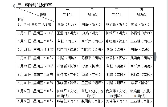 公司2017全国老员工英语竞赛报名工作于2016年12月份启动,比赛时间为2017年4月9日上午9:00-11:00。为迎接2017全国老员工英语竞赛,帮助参赛员工更好地准备比赛,英语教研室组织英语教师对员工进行校内辅导,在辅导班开班之际,2017年3月1日下午英语教研室于2号楼307召开全国老员工英语竞赛辅导工作专题会议。会议由英语教研室秦毅老师主持,全体英语教师参加了此次会议。