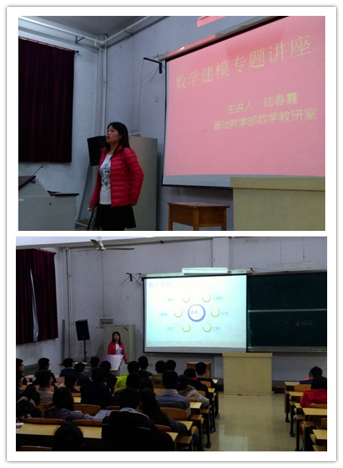 11月16日下午,基础教学部数学教研室在7号楼103室举办了数学建模专题讲座,本次讲座由数学教研室陆春霞老师主讲,公司本科15级、16级共有150余名同学参加。