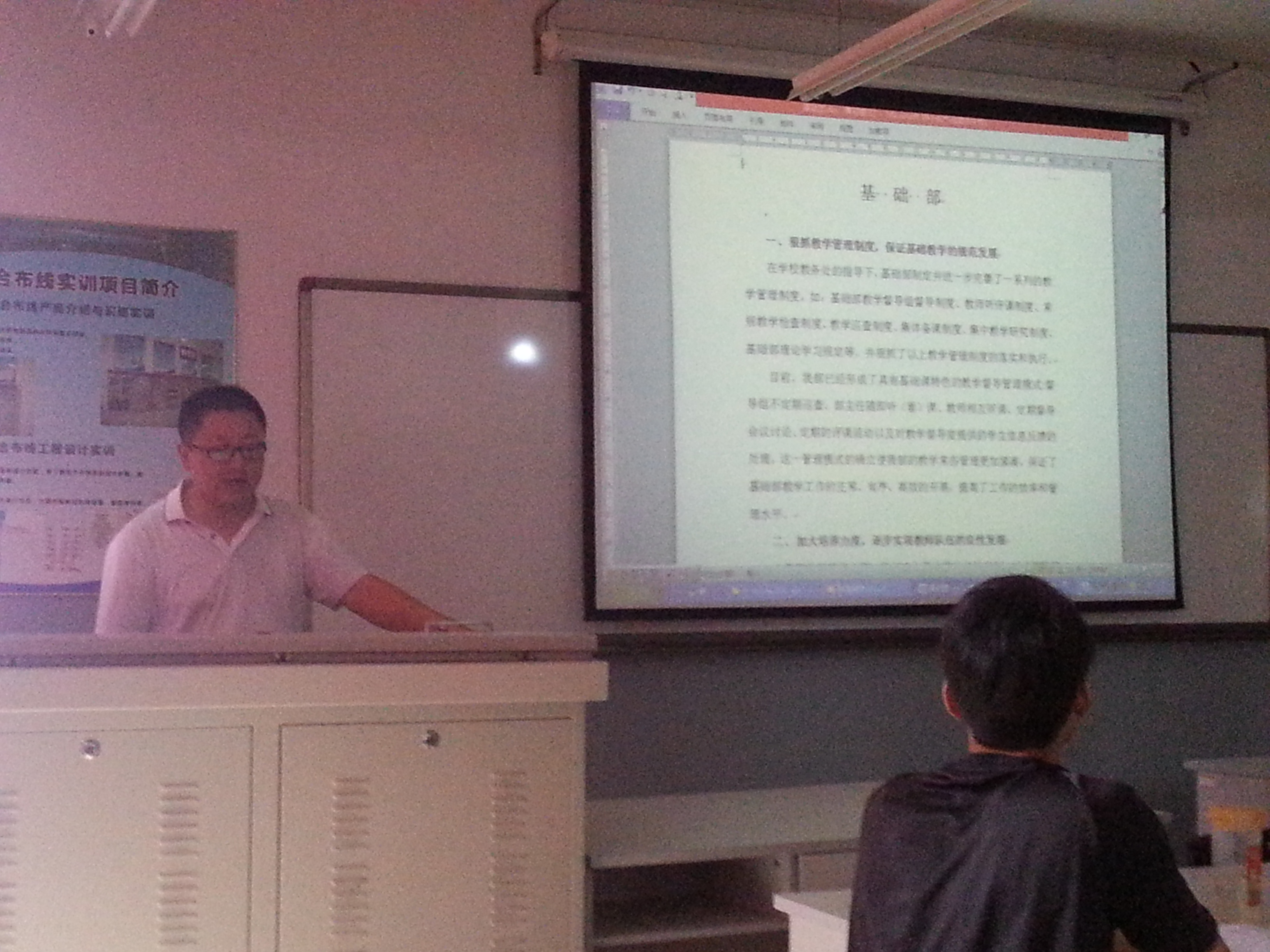 我部高度重视此次培训工作,各教研室分别制定出切实可行的培训计划,培训任务责任到人,确保培训质量。此次培训采取集中培训、分组培训和自学三种方式进行。集中培训时间为8月22日下午至8月24日。集中培训阶段分别由基础部主任雷海峰,基础部教学副主任李琦以讲座形式开展,分别就应用型本科教育的特征与特色、高职教育基础课程的定位、公司教学管理制度剖析、基础课教学过程详解、教学常规集中培训、基础课备课的过程及方法、基础课程教学方法的运用、基础课程教学手段的选择等进行了详细讲解。参加培训的新教师在培训过程中严格遵守培训纪律,虚心学习,认真做好学习笔记。