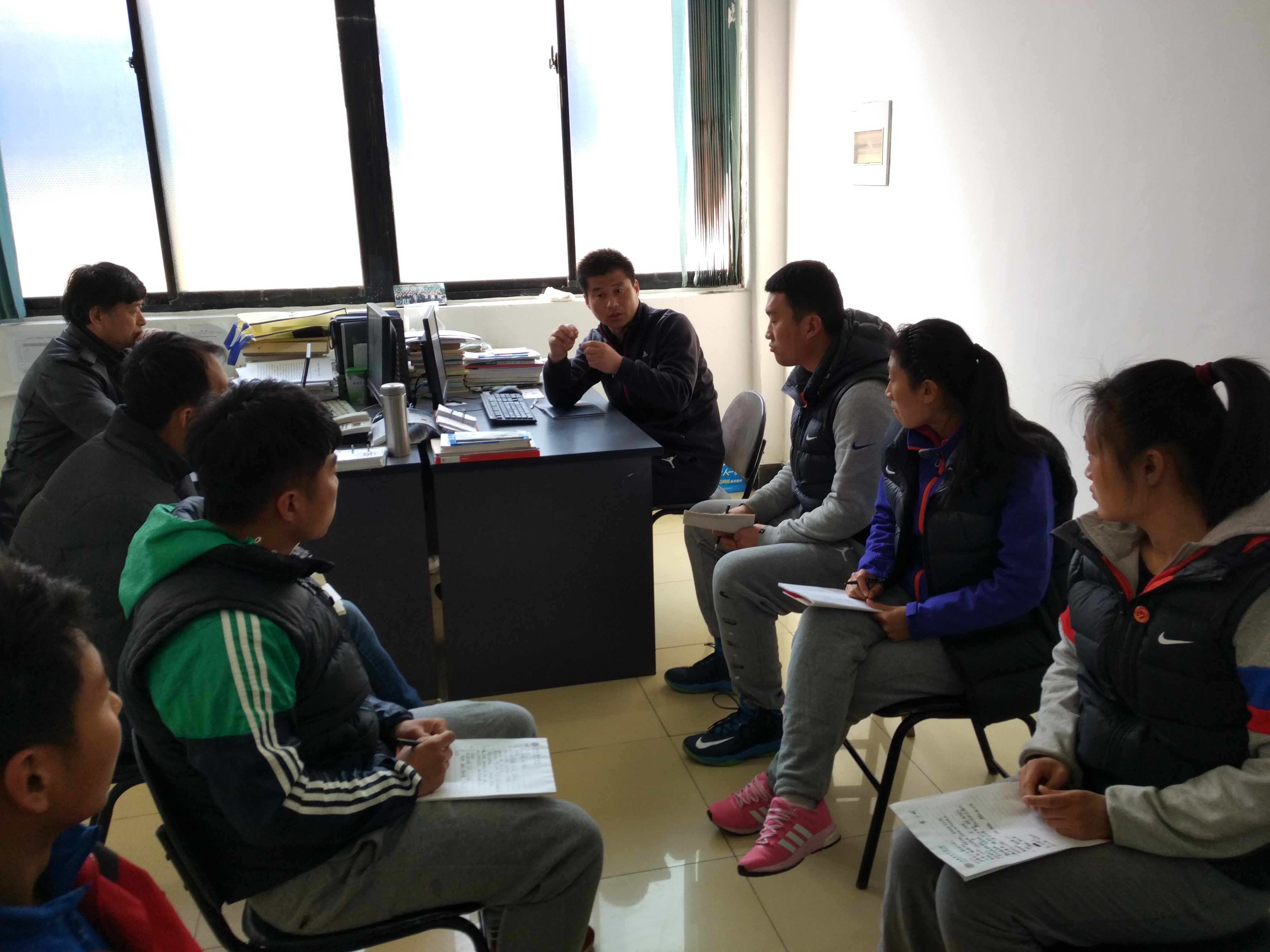 为贯彻学习公司第四届教职工代表大会精神,体育教研室于2016年3月14日在3号楼107召开专题会议,体育教研室全体教师参加会议,大学体育部主任刘兖峰主持。