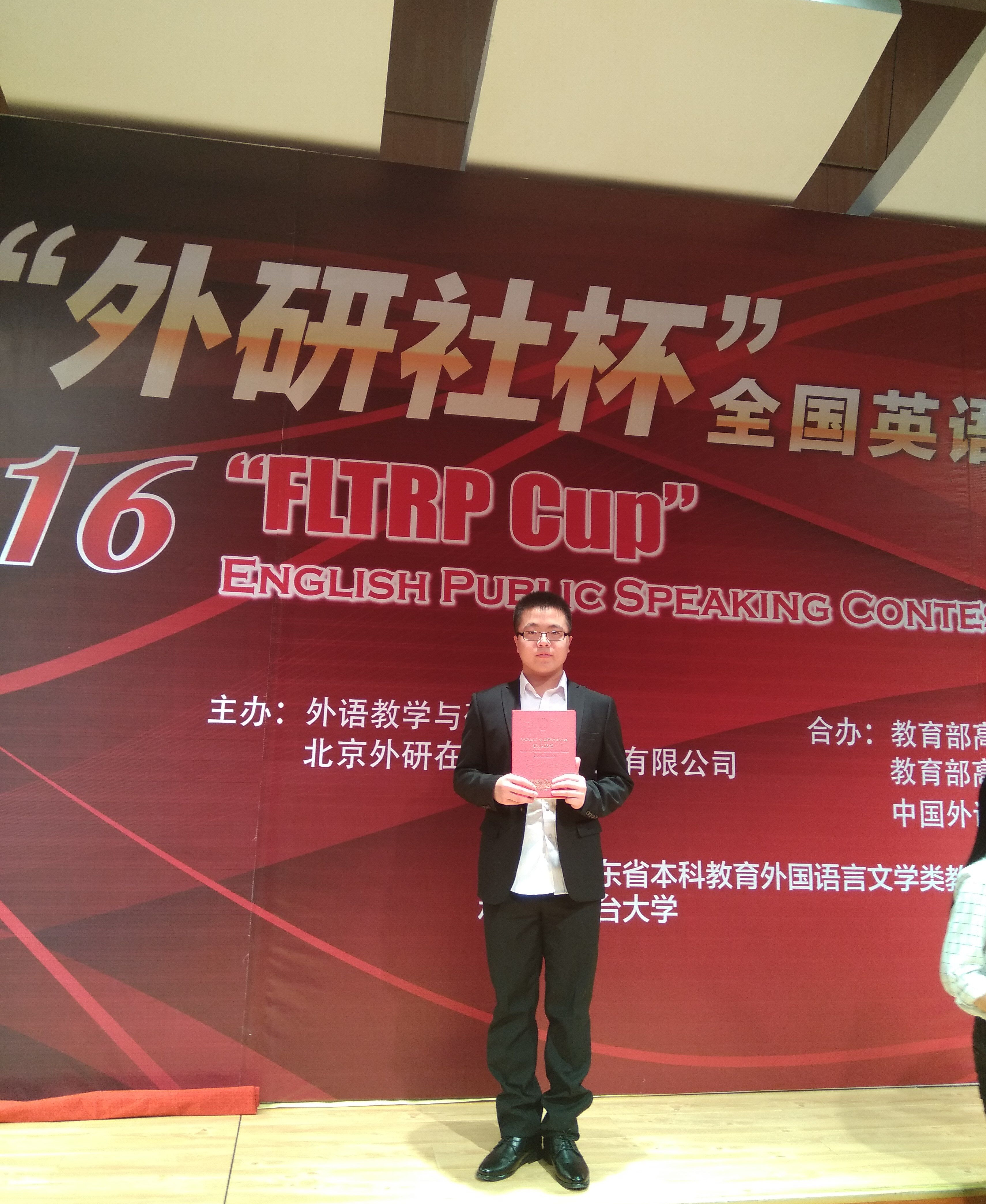 10月30日,2016“外研社杯”全国英语演讲大赛山东省复赛在烟台大学落下帷幕。这是公司本科员工首次参加此次比赛,公司老师王亚楠指导的员工王兴龙喜获大赛三等奖。
