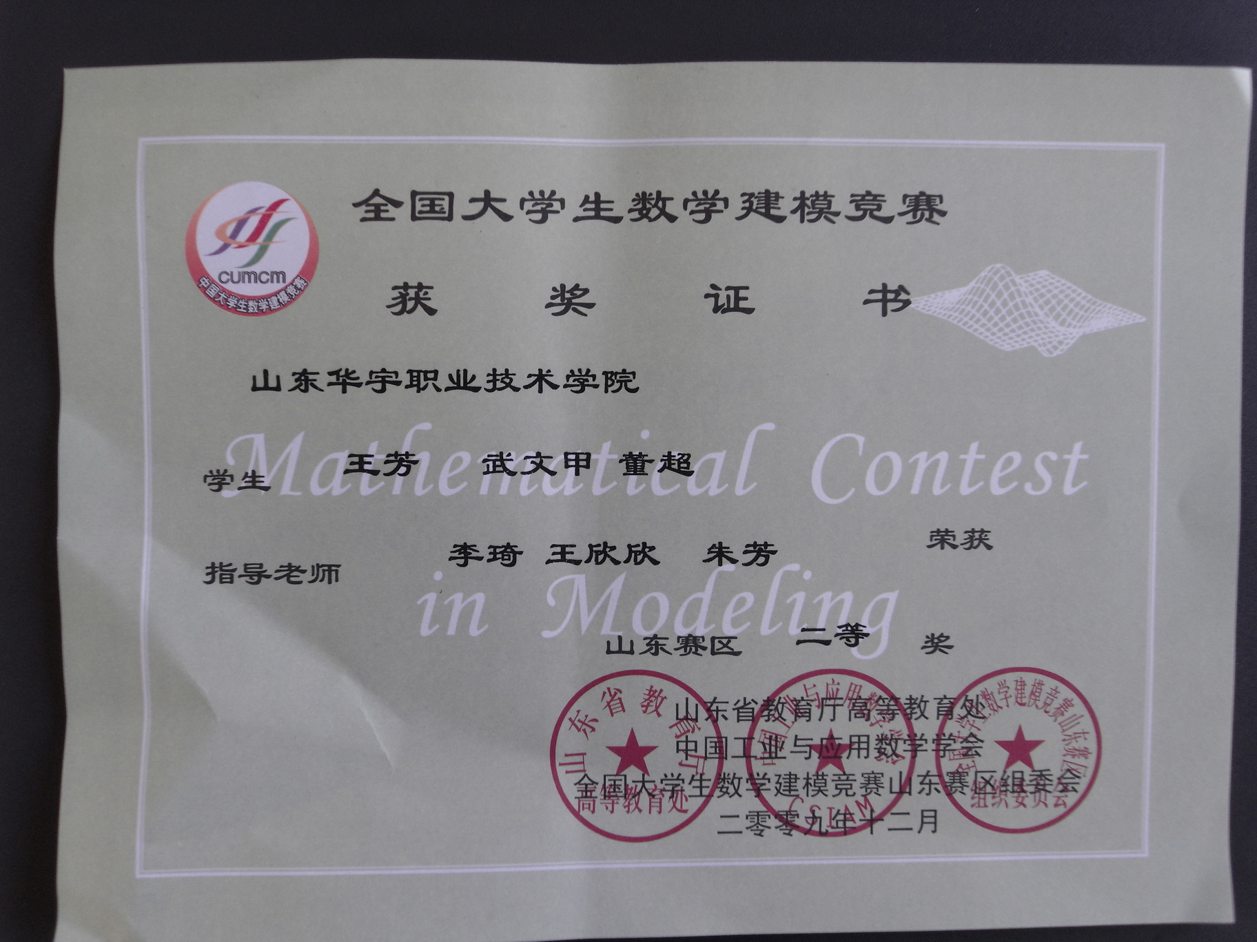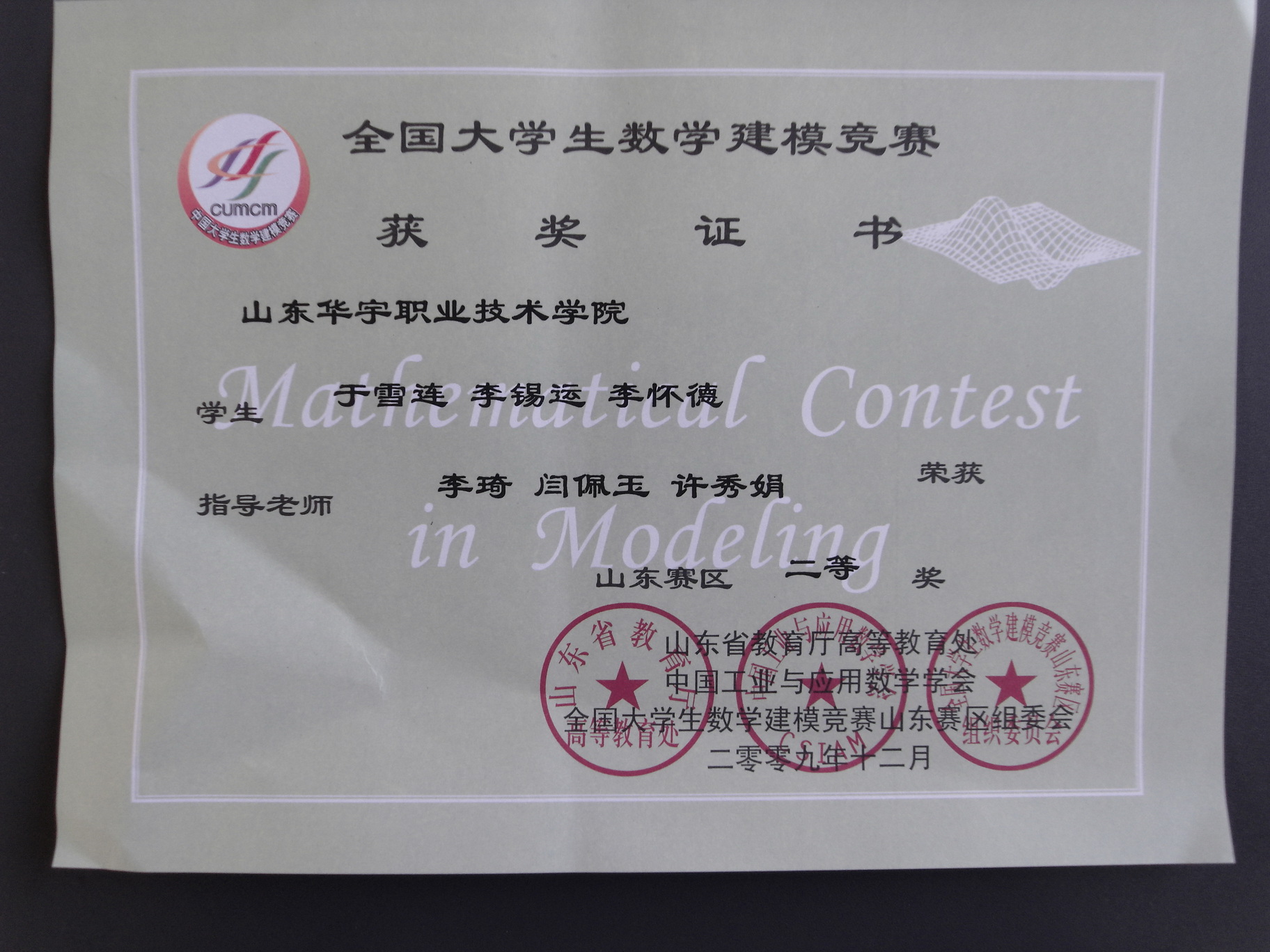 公司员工在2009年“高教社”杯全国老员工数学建模大赛上喜获佳绩。公司两支代表队纷纷夺得山东赛区二等奖。2010年1月5日,获奖证书抵达我部。