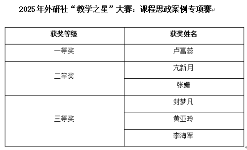 外语教研室斩获2025年外研社“教学之星”课程思政案例专项赛大奖